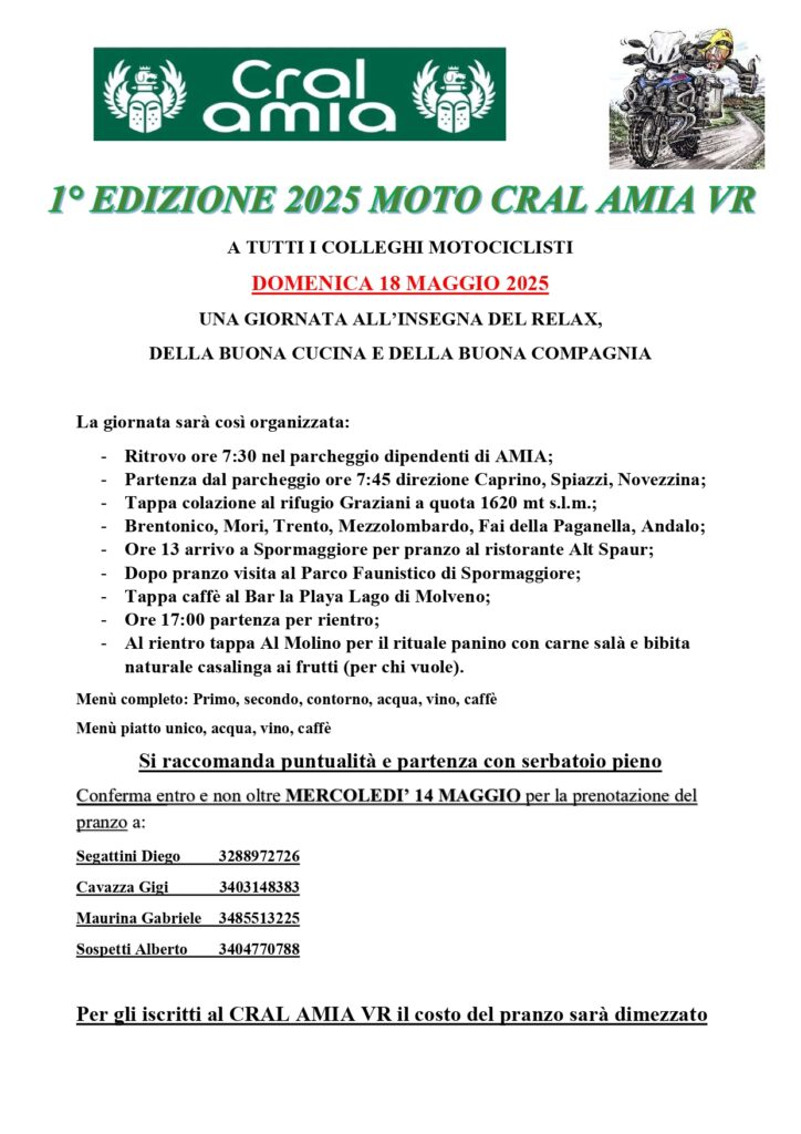 1° Edizione MOTO CRAL AMIA 18 maggio 2025